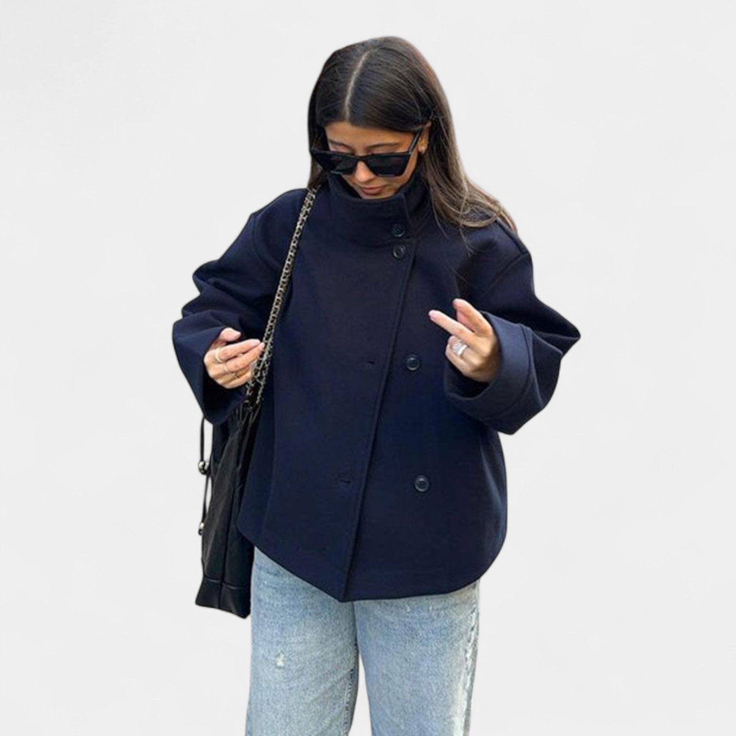Lucie- frakken er den perfekte blanding af elegance og komfort. Dens dobbeltradede lukning og moderne snit vil tilføje et strejf af stil til dit outfit, mens det alsidige design er perfekt til både afslappet brug og særlige lejligheder. En stil, der aldrig vil skuffe dig og altid øge din selvtillid.